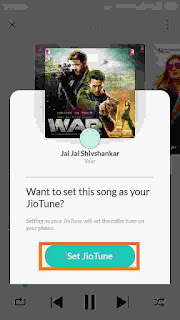 Step 6.set Jio tune के ऑप्शन पर क्लिक करने के बाद सामने एक छोटा सा पेज ओपन होगा जिसपर want to set this song as your Jio tune? लिखा होगा और उसके नीचे set Jio tune का ऑप्शन होगा आपको उसपर क्लिक कर देना है।